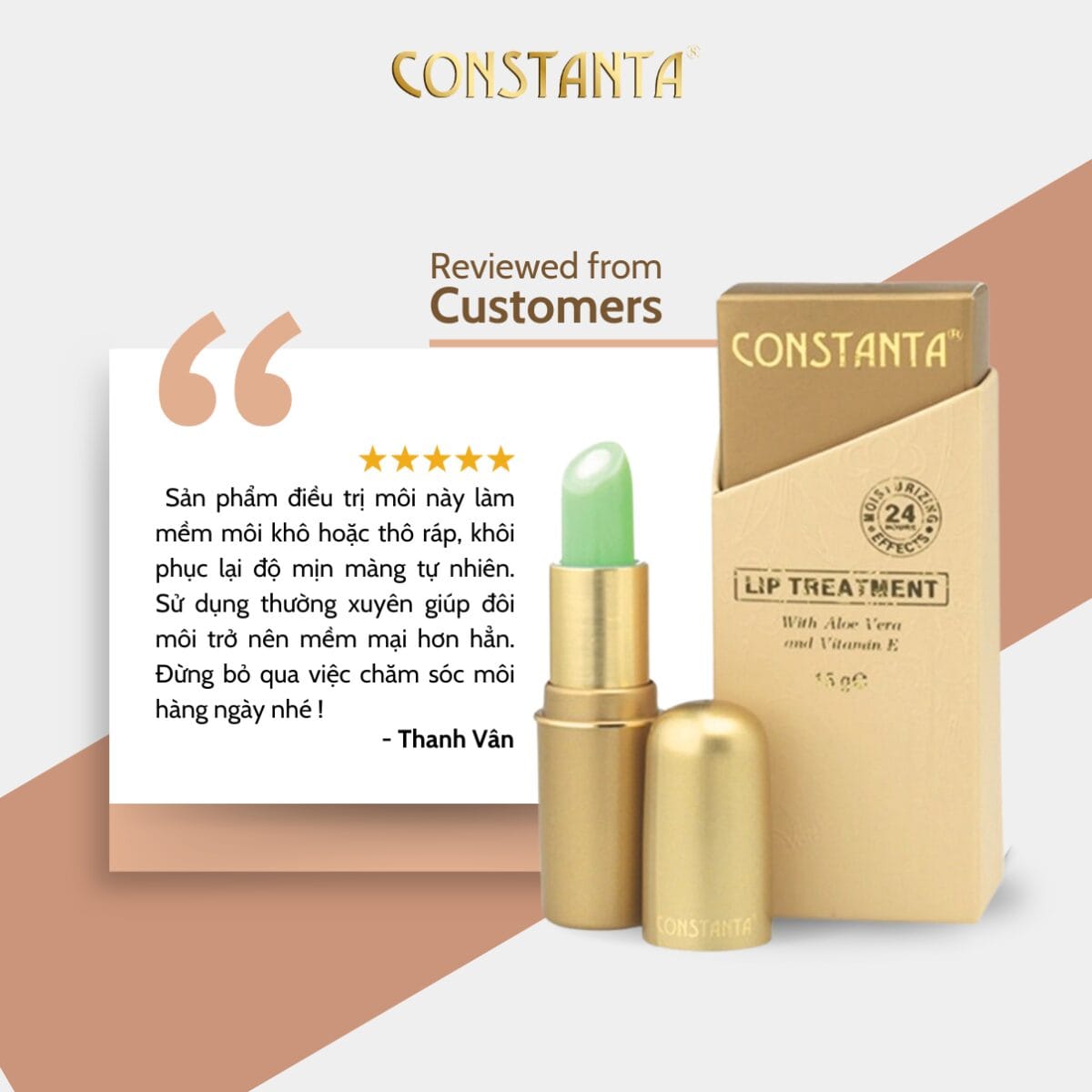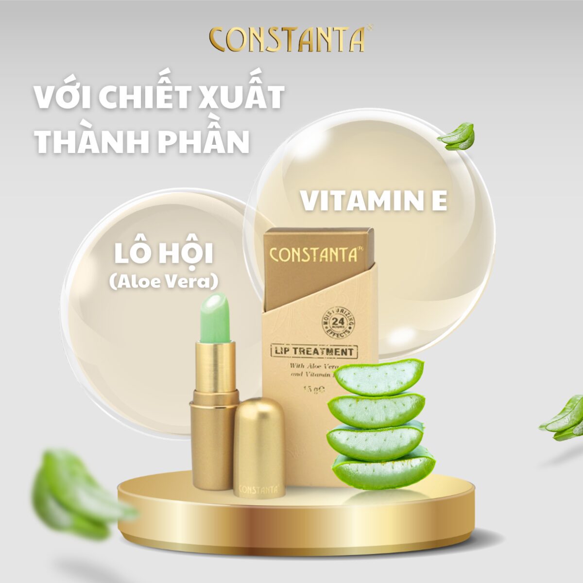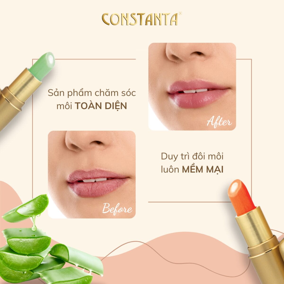 Son Dưỡng Môi Constanta Lip Treatment – giải pháp tự nhiên giúp dưỡng ẩm sâu, chữa lành và bảo vệ đôi môi. Với thành phần Lô Hội và Vitamin E, mang lại đôi môi mềm mại, mịn màng.